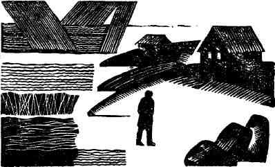 …Снова Луусалми. Косой дождь то уменьшается, то вновь усиливается. «Ресторан» — длинный стол из необтесанных досок под соснами — залит водой. Плита, сложенная из камней и железной бочки, давно потухла. Дождю не видно конца, а скоро начнет темнеть, и тогда ничего не увидишь на стройке. Приходится накинуть на плечи поверх пальто какой-нибудь плащ и идти на объекты. Их пока немного — срубы нескольких домов да трасса будущей улицы. Нас сопровождает начальник стройки Пиккарайнен Виктор Михайлович. Пиккарайнен по виду слишком молод для такой должности, а на самом деле ему уже тридцать лет. Возраст солидный. В первый день я думал о нем: мечтательный юноша, какой он начальник! Когда рабочие, перебивая друг друга, говорили о неполадках на стройке, начальник сидел и молчал. Наверно, о том только и думает, как бы скорее удрать в Петрозаводск, где он окончил университет.