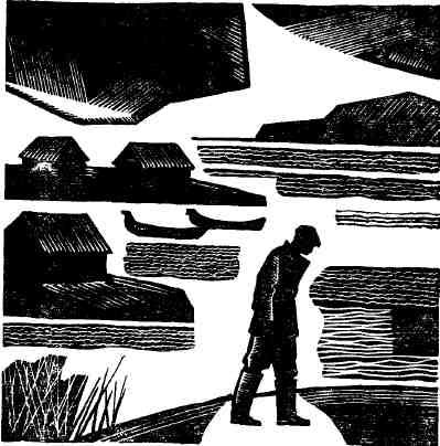 Был поздний вечер, когда катер пошел навстречу черным волнам и увез секретаря райкома. А мы на моторной лодке переправились на левый берег, на место бывшей деревни. Там стоят два дома, которые не значатся ни в каких инвентаризационных книгах. Рабочие сколачивают их за два-три вечера. Без крыльца и прихожей. Надо низко нагнуться, чтобы войти в дверь. За спиной — пронзительно холодный ветер, а на пороге дома в лицо ударяет такая жара, что моментально вспотеешь. Печка накалена докрасна. Узкие койки стоят вплотную.
