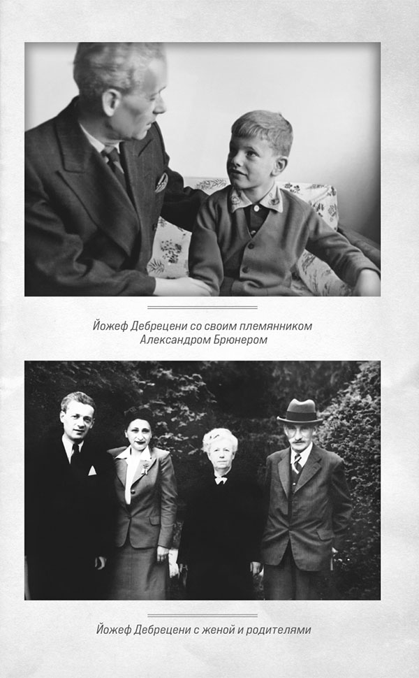Йожеф Дебрецени – творческий псевдоним Йожефа Брюнера (1905–1978), ведущего представителя литературы на венгерском языке, писателя и журналиста. Его перу принадлежит множество романов, поэтических сборников и пьес, а также блистательных переводов сербской поэзии. В 1925–1938 годах Дебрецени служил редактором в венгерских печатных изданиях, а в 1938 году был уволен в связи с действовавшим антиеврейским законодательством. С 1941 по 1944 год он был отправлен на принудительные работы, а 1 мая 1944-го депортирован в Аушвиц, комплекс концентрационных лагерей, зловещий символ нацистского террора. По окончании Второй мировой войны Дебрецени сотрудничал с крупнейшими венгерскими СМИ и был удостоен высочайшей премии бывшей Югославии для литературы на венгерском языке – Hid («Мост») Prize.