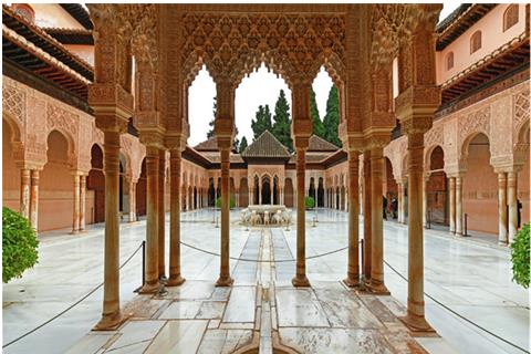 Признанной вершиной исламской архитектуры является дворец Альгамбра («Красный»). Он находится в Гранаде. Снаружи дворец устроен как внушительная крепость, но внутри посетителя ждет неповторимое совершенство арабской стилистики.