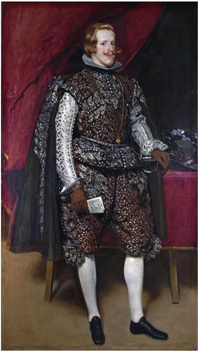 Традиционную версию портрета пишет Хуан Гарсия де Миранда (рис. 83), изображение короля, опершегося на стол, входит в придворную иконографию Испании, и в целом картина соответствует образцам XVI века. На пути к королевскому двору этот художник прошел немало испытаний. Он родился без правой кисти и работал, закрепляя кисти на культе. Хуан де Миранда стал уважаемым художником, которому доверили реставрацию картин после пожара в Алькасаре 1734 года, в том числе «Менины» Веласкеса.