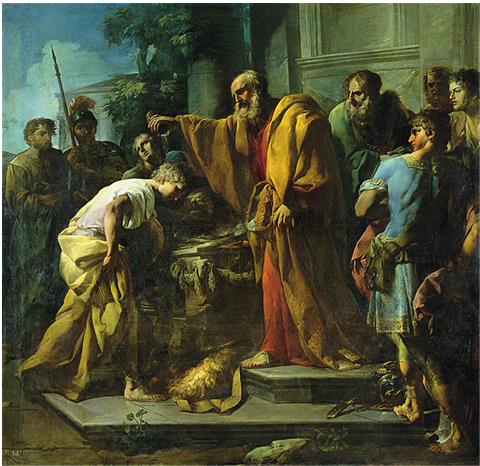 Рис. 85. Антонио Гонсалес Веласкес. Пророк Самуил помазывает Давида на царство вместо Саула. 1749 г.