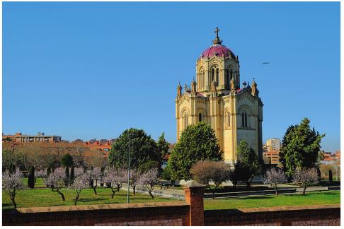 В небольшом городе Гвадалахара, северо-восточнее Мадрида, стоит пантеон герцогини де Севильяно (рис. 101). Его автор – Рикардо Веласкес Боско, мадридский архитектор, который в 1890-х годах возглавил Высшую архитектурную школу Мадрида. Внешние элементы здания отсылают к романскому стилю, это следствие влияния немецкого Rundbogenstil [7], но в основе строения – крестово-купольная система: равносторонний греческий крест с куполом в центре. Византийские мотивы развиваются во внутреннем интерьере, мозаике и пространстве центрального купола. Похожим устройством наделены православные храмы.