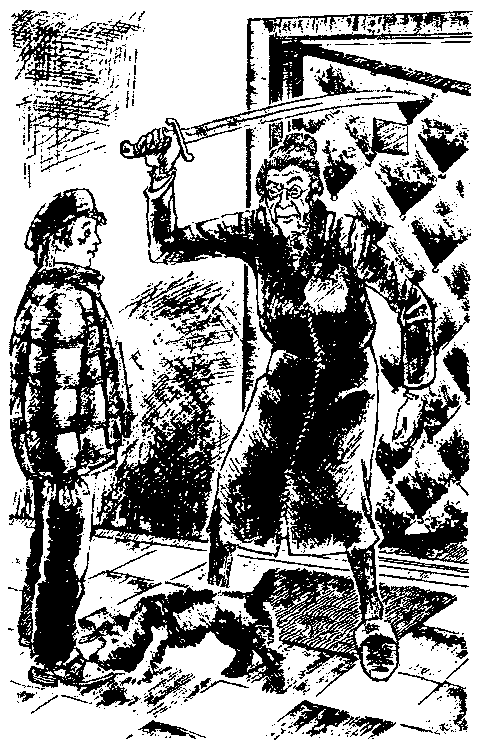 Мужик уже до нас добежал. У него и так морда из тех, которые, как говорится, лучше ночью не встречать, а то испугаешься, а он еще злобную рожу состроил и как заорет:
