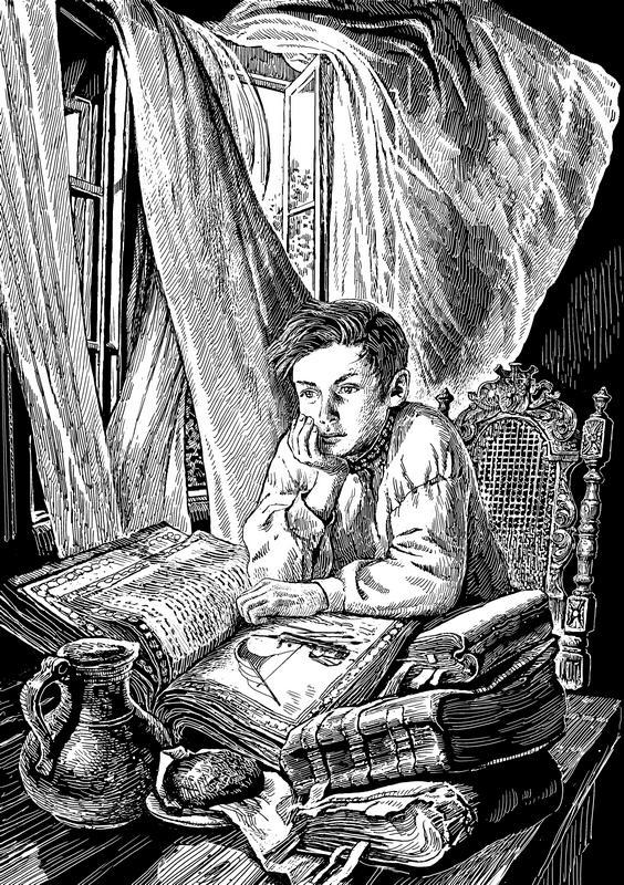 Некоторое время они стояли друг перед другом молча. Она – высокая, прямая, в строгом чёрном платье, от которого её голова казалась ещё более седой. И он – двенадцатилетний мальчик, плечистый, крепкий, с пытливым взглядом тёмных и острых глаз.