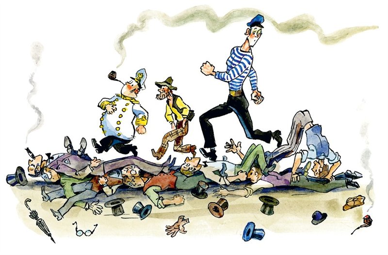 «Дредноут» – буквально «неустрашимый». Так назвали англичане огромный по тем временам корабль с мощными машинами, с тяжёлыми пушками, с прочной бронёй, построенный в 1906 году. Думали, и правда будут эти корабли неустрашимыми, а оказались они самыми трусливыми. Стоит такой корабль очень дорого. Выйдешь на нём в море, а там и на мине можно подорваться, и под торпедный залп попасть. Жалко! Вот и получалось, что дредноуты больше стояли в гаванях, а в море выходить боялись.