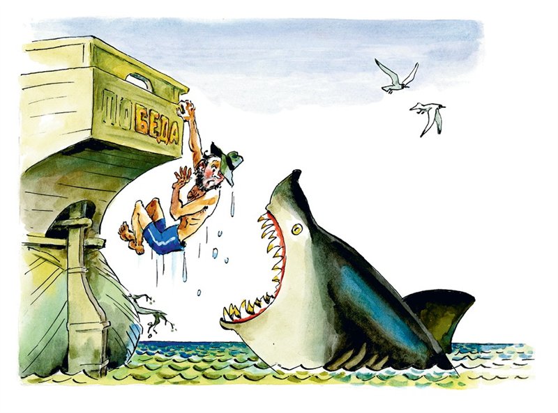 Вдруг что-то ухнуло, яхта накренилась, я на мгновение потерял сознание, а когда очнулся, смотрю – конфигурация берегов резко изменилась, толпы рассеялись, вода кишит головными уборами, тут же плавает будка с мороженым, верхом на ней сидит молодой человек с киноаппаратом и крутит ручку.