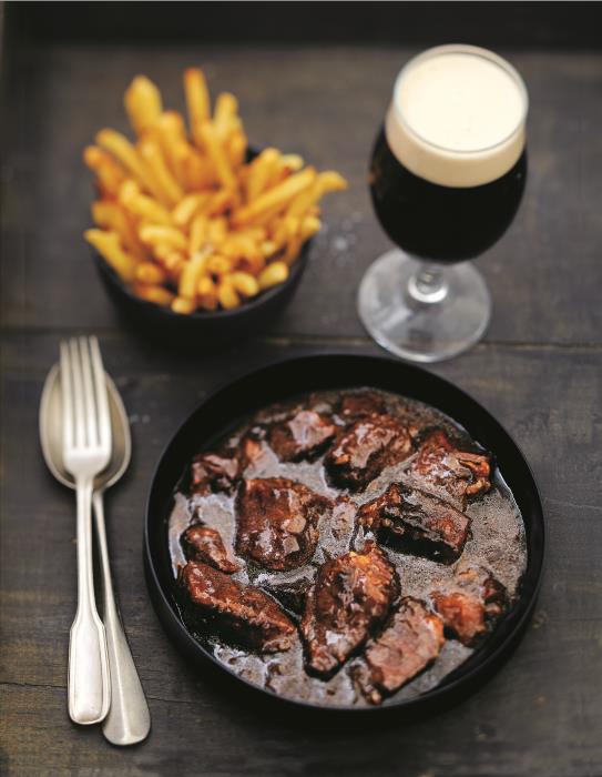 Тем временем разогрейте фритюрницу до 180 °C и вновь погрузите в нее картофель фри, чтобы он подрумянился. Дайте маслу стечь, посолите и сразу же подавайте со стейками.