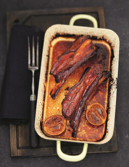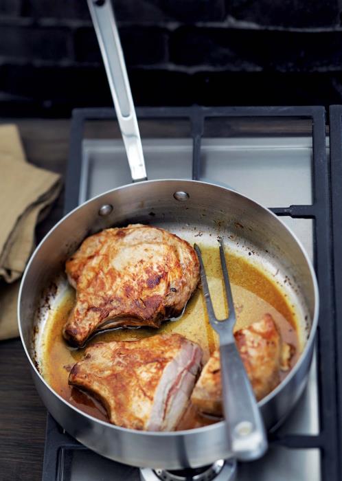 Обжарьте ребра на масле на сковороде по 2 минуты с каждой стороны, затем выложите на противень. Запекайте 10–15 минут до желаемой степени прожарки. Выньте, оберните фольгой и дайте постоять 10 минут.
