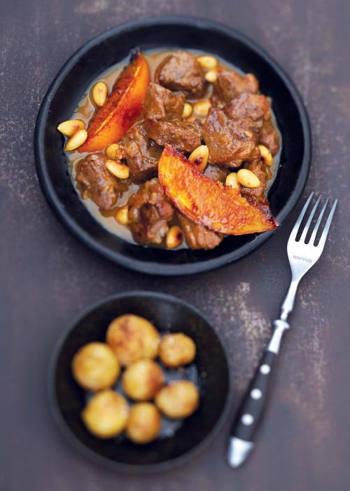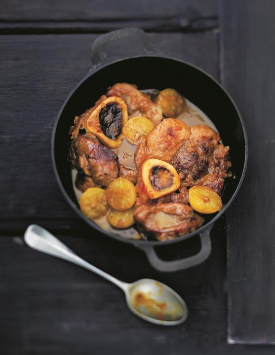 Накануне положите на противень 2 кг разрубленных костей ягненка и 2 почищенные и разрезанные пополам головки репчатого лука. Подрумянивайте их 30 минут при температуре 200 °C.