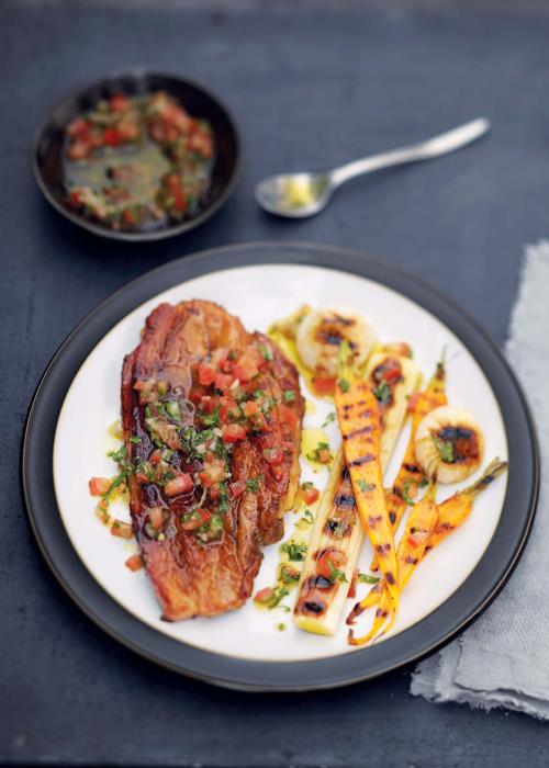 Нежная телячья грудинка с соусом вьерж и кинзой