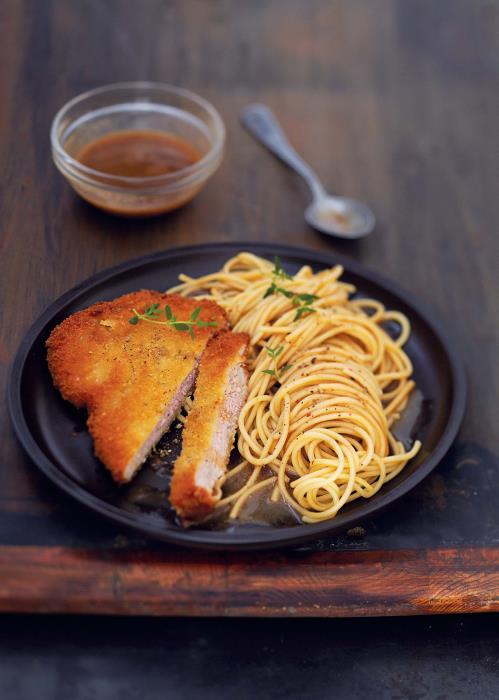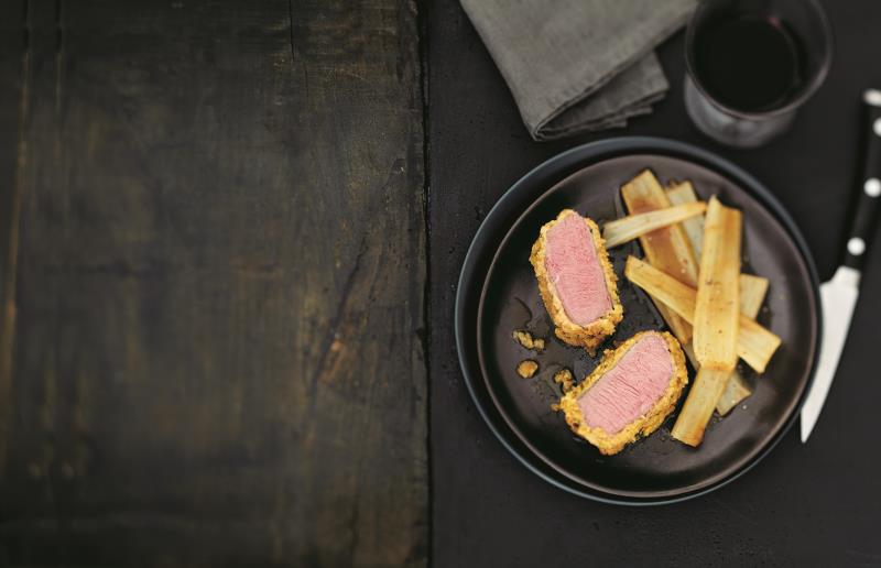 Корейка ягненка под коркой из пармезана, с соусом с маслинами