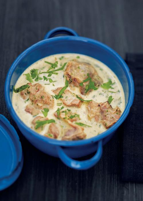 На следующий день снимите застывший жир с поверхности. Перелейте жидкость в кастрюлю и выпарите наполовину, чтобы получить концентрированный бульон из ягненка.