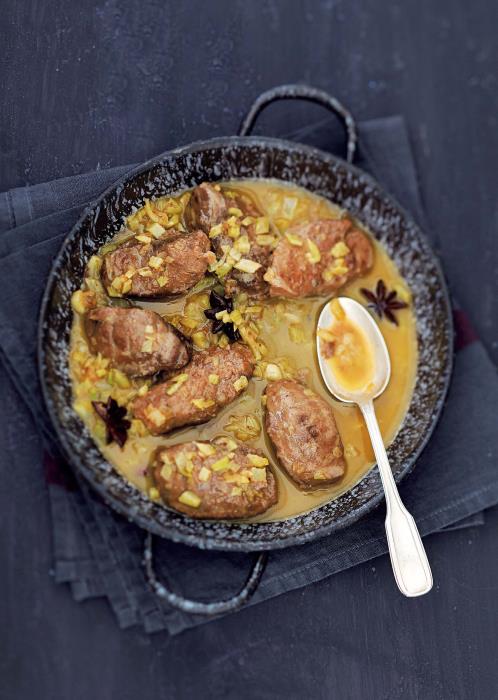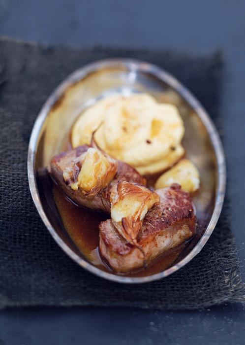Телячьи почки, жаренные на сковороде с винной гущей и кервелем