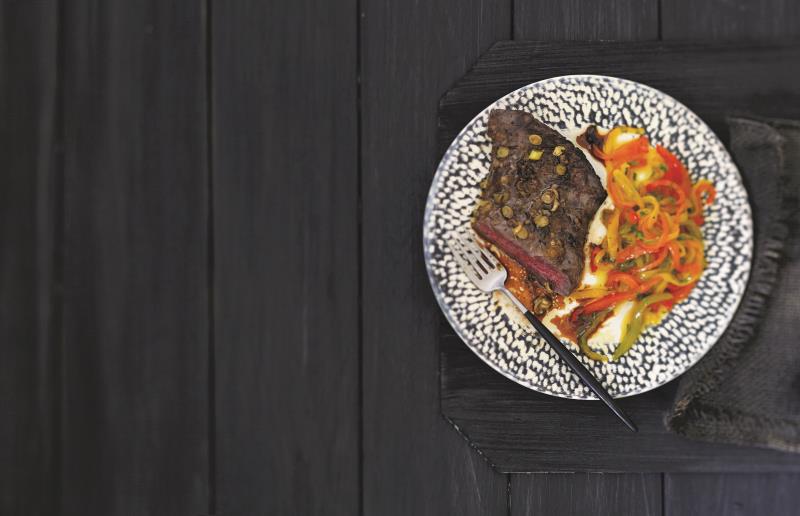 Обсыпьте стейки дробленым перцем, слегка придавливая рукой, чтобы он прилип к мясу.