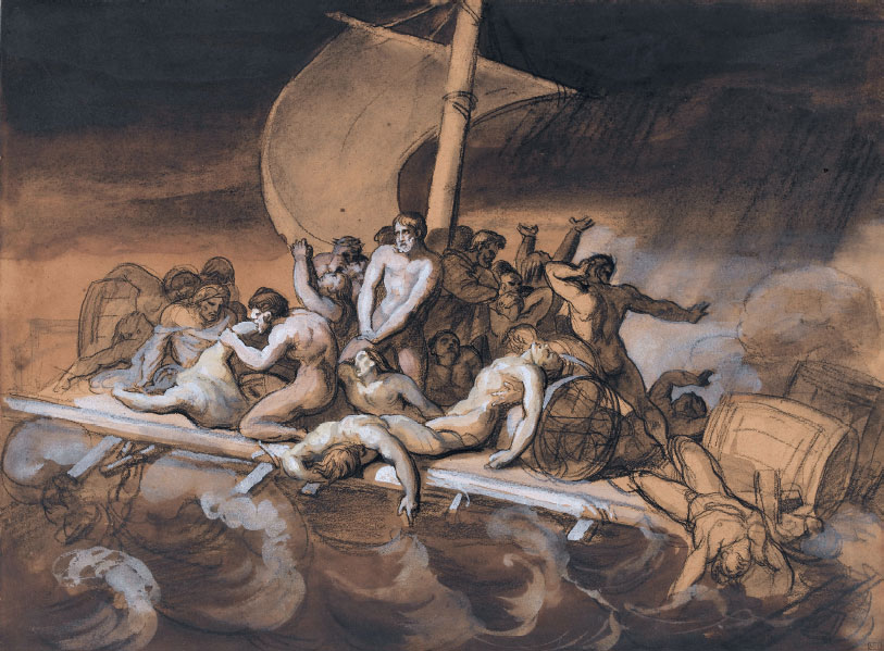 Жерико сделал один набросок, темой которого является каннибализм на плоту. Высвеченная им сцена антропофагии изображает мускулистого моряка, гложущего локоть мускулистого трупа. Это выглядит почти комично. В подобных случаях всегда непросто найти верный тон.