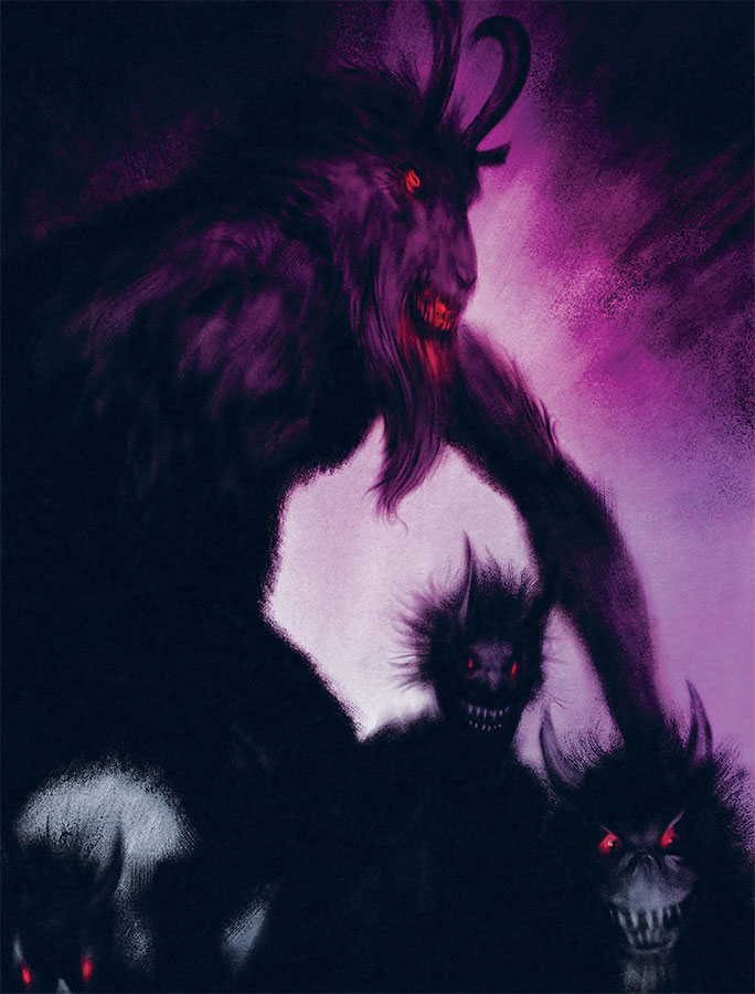 Крампус – конечно же, старейшина европейских монстров зимних праздников: наводящий ужас мохнатый демон с отвратительным поведением, которому не терпится выйти в снежную ночь и натворить бед. Он, конечно, не самый древний из существ, являющихся в праздники, но в наши дни, безусловно, самый известный, поэтому вполне естественно, что именно он открывает наше леденящее душу шествие.