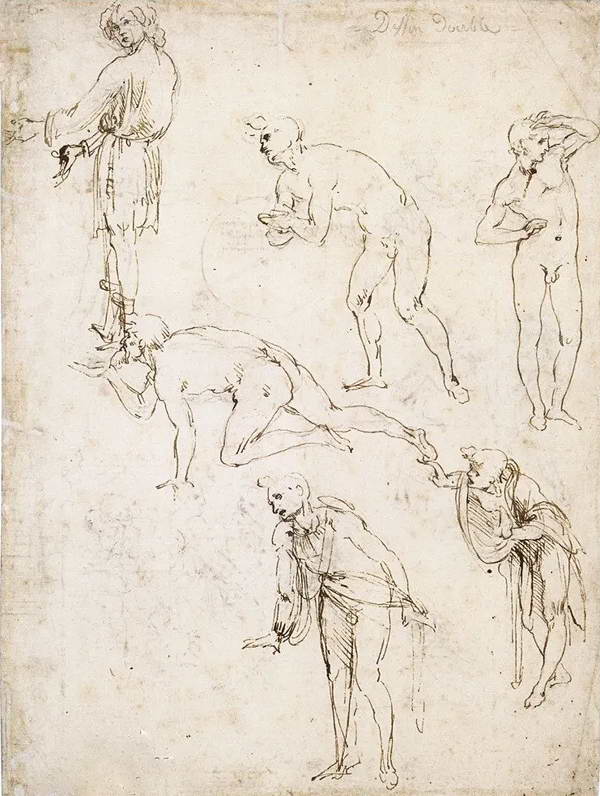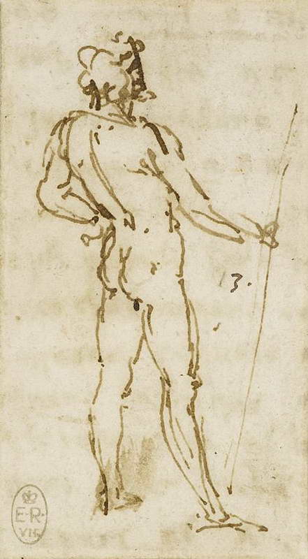 28. Набросок мужской обнаженной фигуры (увеличено). 1497–1500. Рисунок пером. Виндзор. Королевская библиотека.
