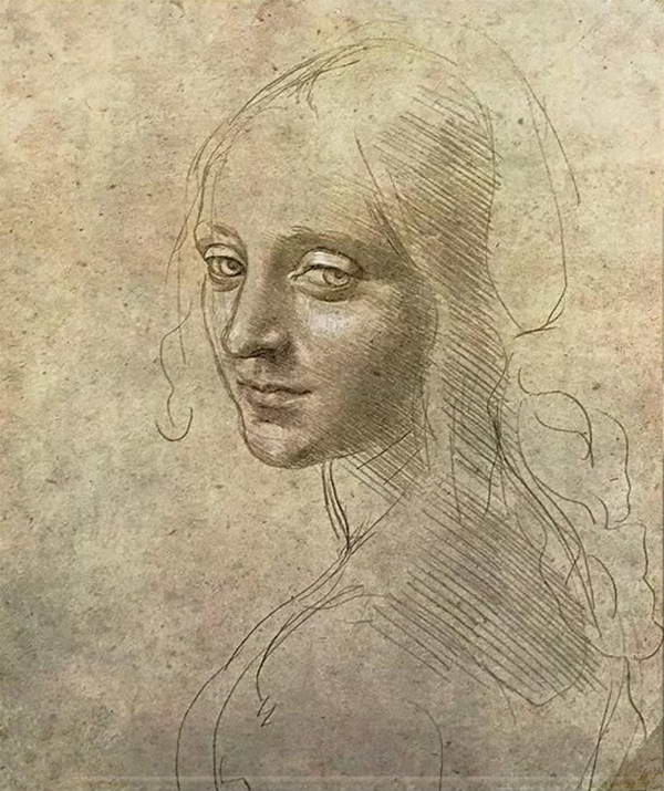 50. Этюд для головы Анны в картине «Мадонна с младенцем и святой Анной». Около 1508. Рисунок итальянским карандашом. Виндзор. Королевская библиотека.