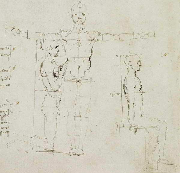 25. Пропорции человеческой фигуры. Около 1490. Рисунок пером. Виндзор. Королевская библиотека.