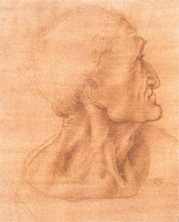 32. Этюд для головы Иуды в «Тайной вечери». Около 1495. Рисунок сангиной. Виндзор. Королевская библиотека.