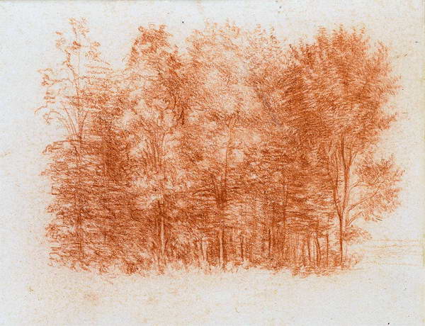 34. Опушка березовой рощи. Около 1498. Рисунок сангиной. Виндзор. Королевская библиотека.