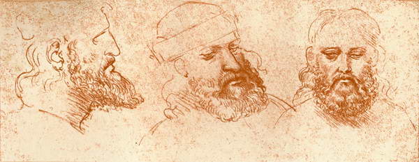 39. Три портретные зарисовки Цезаря Борджа. 1502. Рисунок сангиной. Турин. Библиотека.