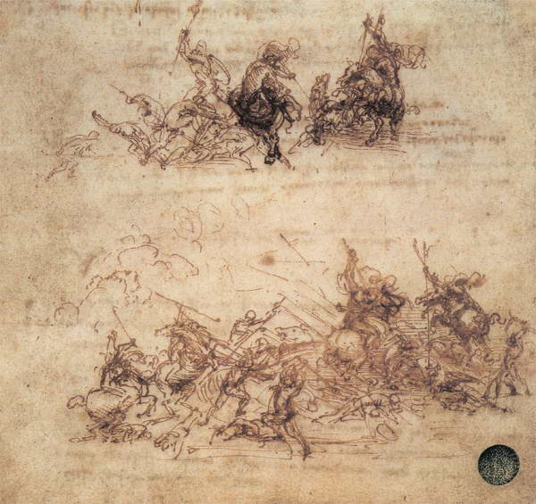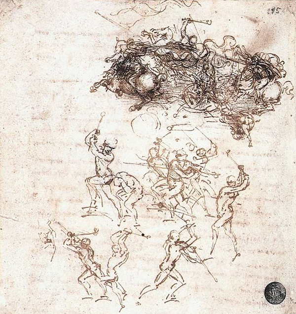 40. Наброски для «Битвы при Ангиари». 1503. Рисунок пером. Виндзор. Королевская библиотека.