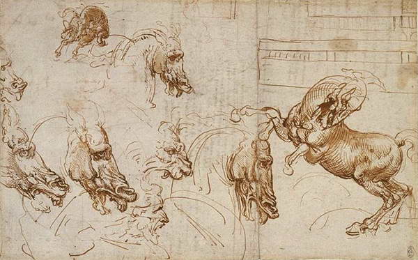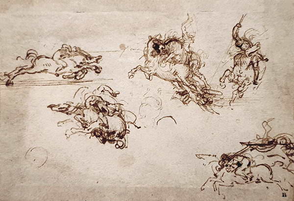 43. Наброски для «Битвы при Ангиари». 1503. Рисунок пером. Лондон. Британский музей.