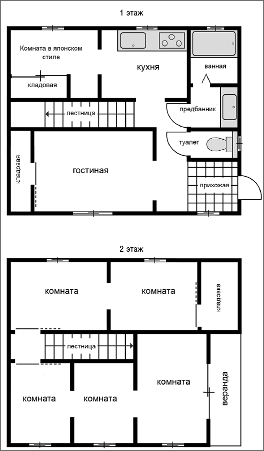 (обратно)В японских домах двери в кладовые помещения часто делают во всю стену, то есть ширина двери совпадает по длине с той стороной кладовки, где расположен вход. По предположению автора, при строительстве «потайной комнаты» тоже должны были придерживаться этого принципа (вероятно, потому, что, как и кладовка, это своего рода подсобное помещение). (Примечание научного редактора.)
