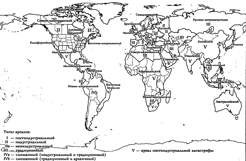 Прежде всего Антарктида, где пока нет ни постоянного населения, ни промышленности, на этом чертеже вообще отсутствует. Это в значительной степени относится и к Африке. Далее, граница между Азией и Австралией проходит не по побережью Зеленого континента и даже не по зоогеографической линии Уоллеса. Сложнейшее переплетение островов и морей в районе Зондского и Соломонова архипелагов издавна выделяется геополитиками в самостоятельную геополитическую общность – Австралазию. Несколько неожиданным может показаться то обстоятельство, что к Австралазии следует отнести также Малаккский полуостров и сопровождающие его островные дуги, а также северное побережье самой Австралии. Заметим в этой связи, что Тихоокеанская война 1941—1945 гг. включила в свою орбиту всю Австралазию и совершенно не коснулась Австралийского материка: геополитические границы охраняются значительно лучше, нежели государственные.